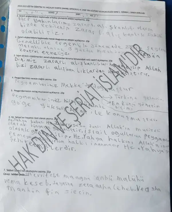 ”Din Kültürü ve Ahlak Bilgisi öğretmeninden sınav kağıdında öğrencilere Şeriat Propagandası!